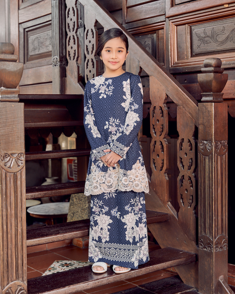 CELINA LACE KURUNG (KID) - NAVY