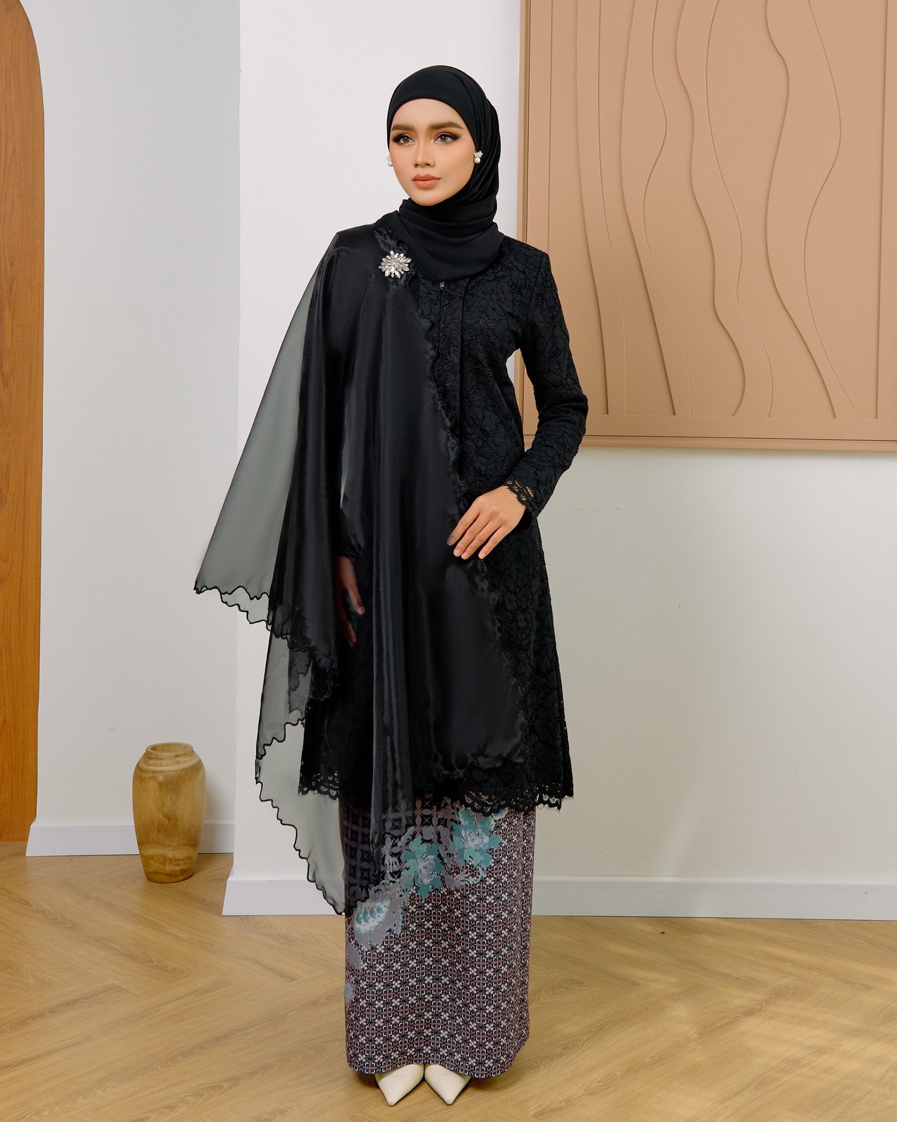 Model : 167 cm , 55kg. Bust 34 & Hip 36. Wearing Widuri Kurung in size XS (Example)