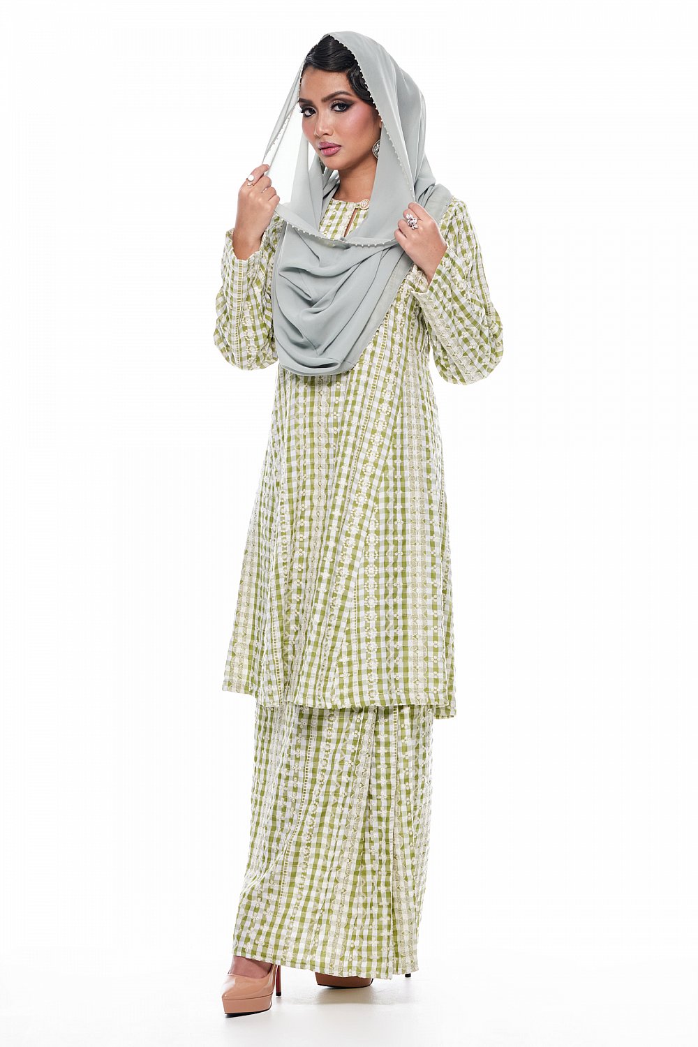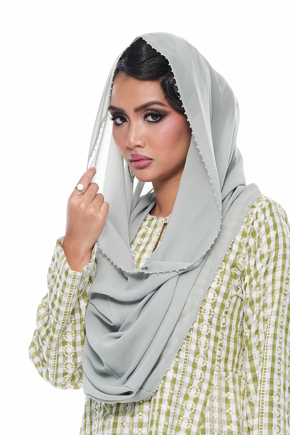 Anggun - Exclusive Instant Shawl Beaded (Sage)