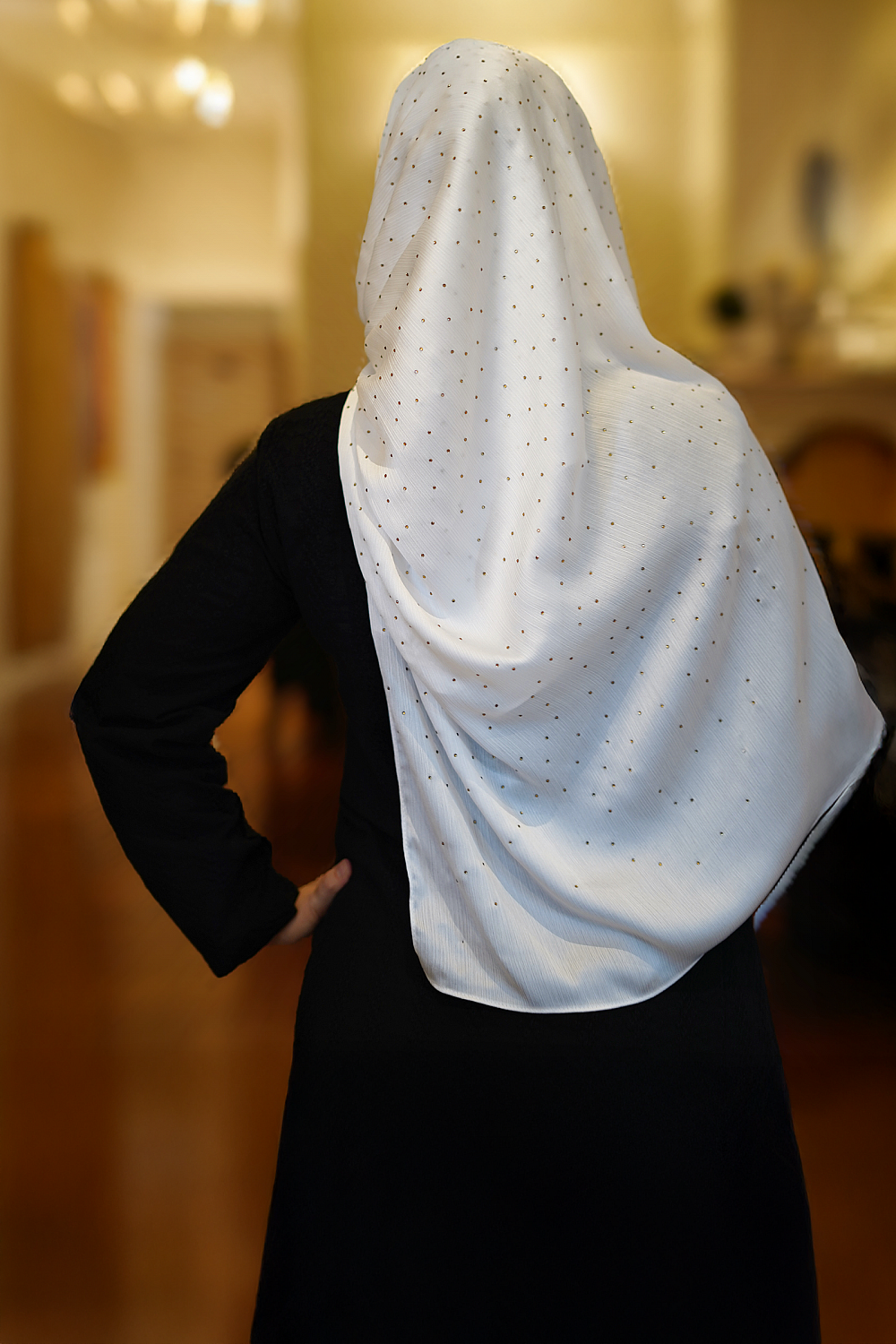 - Gold beaded embellishment