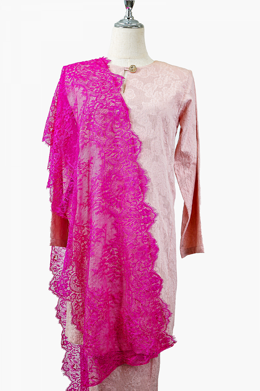 French Lace Selendang (Fuscia Pink)