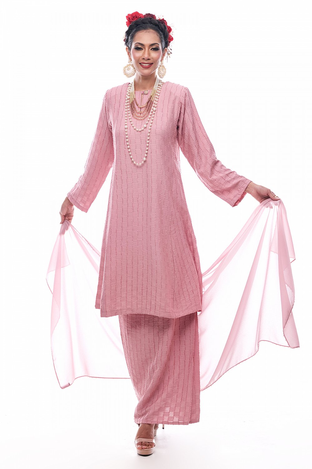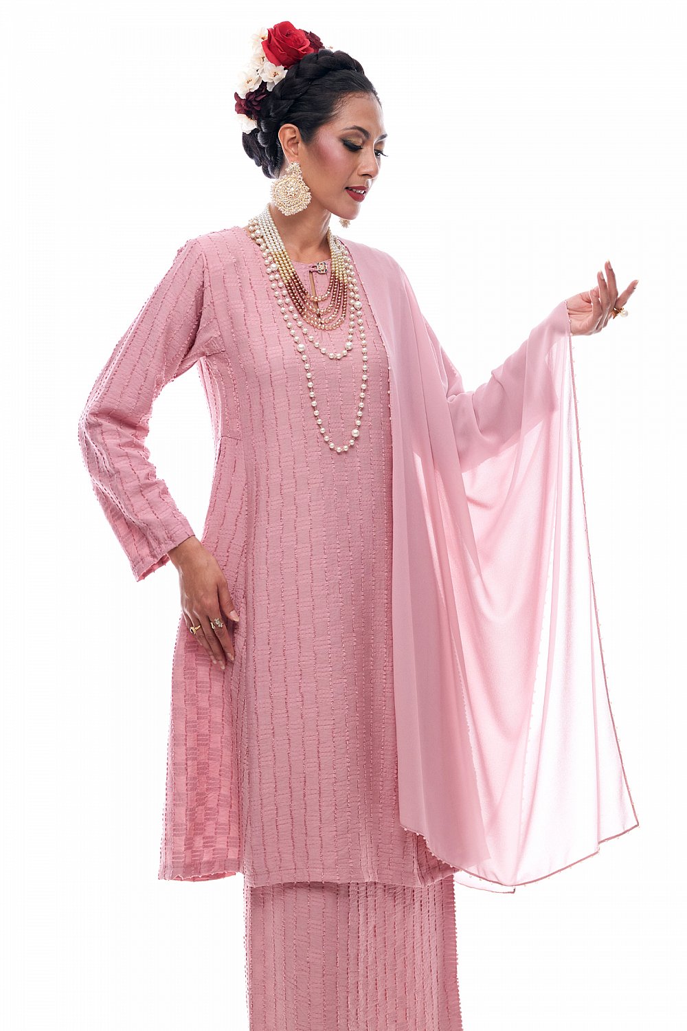 Jelita - Exclusive Long Beaded Shawl (Rose Pink)