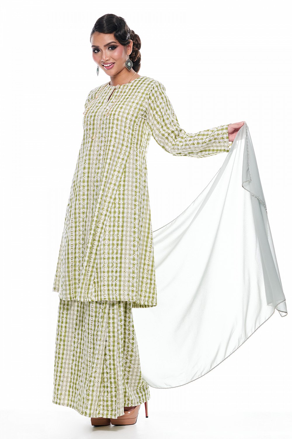 Jelita - Exclusive Long Beaded Shawl (Sage)