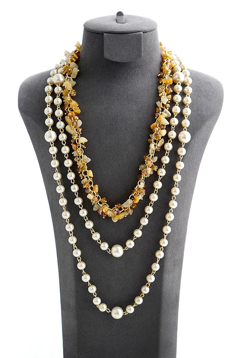 Material - Gold Bead Long Necklace with Gold Dainty Pearl Long Neck