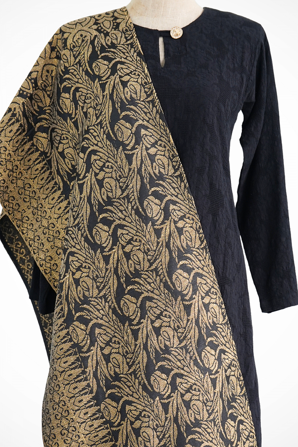 Selendang Songket Klasik (Black Gold Batik)
