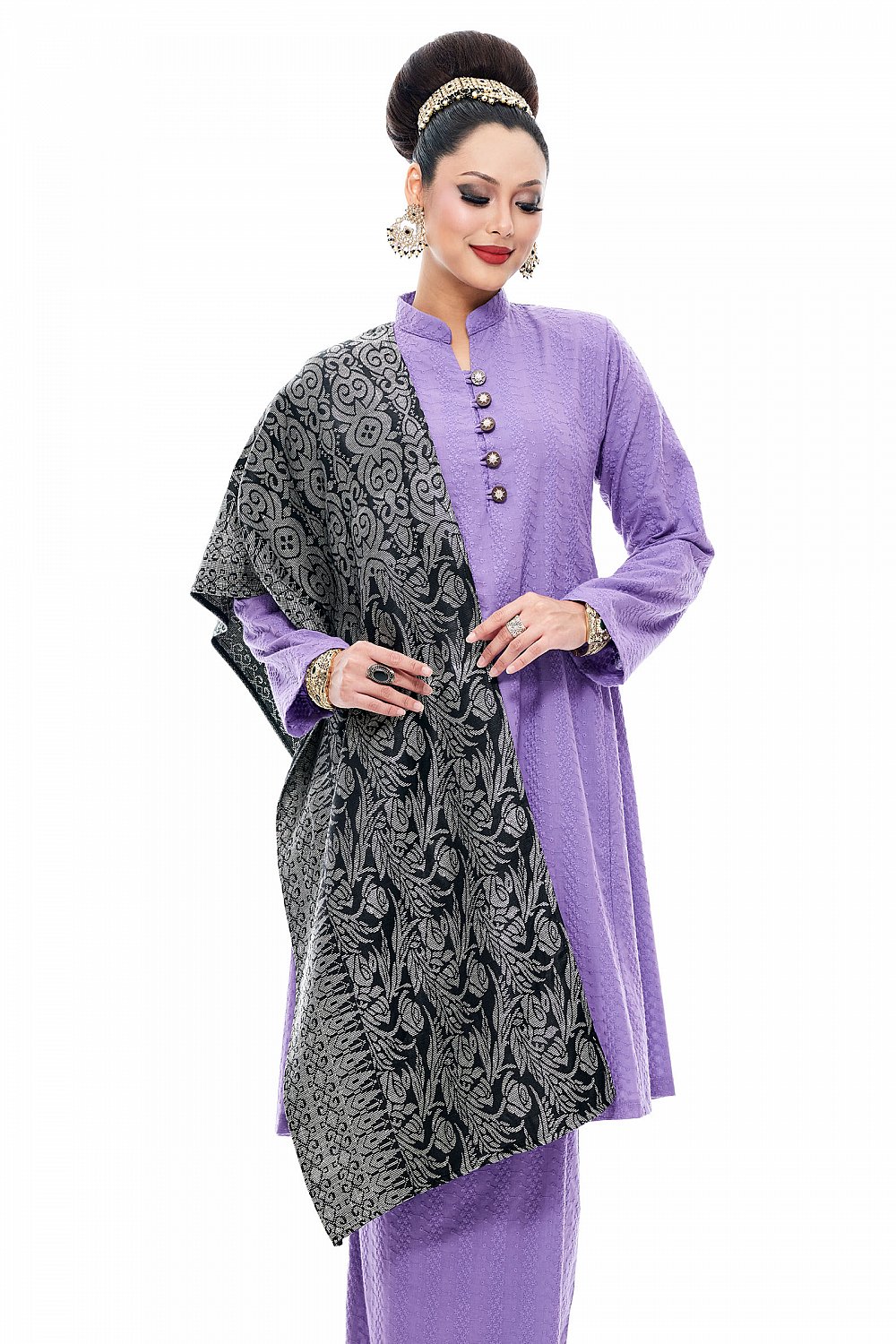 Selendang Songket Klasik (Black Silver Batik)